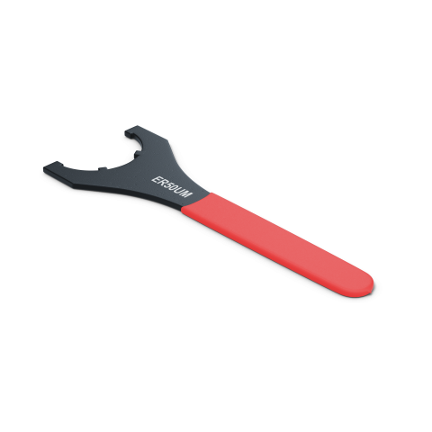Handlicher, stabiler Spannschlüssel aus Stahl zur Betätigung der Spannmutter des Preci•Point Spannzangenfutters.