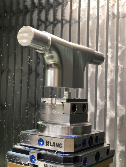 Die Adapterplatte steht für die Modularität und Vielseitigkeit des Nullpunktspannsystems. Durch sie kann vom großen 96 mm Rastermaß auf das kleine 52 mm Rastermaß gewechselt werden, wenn der Anwender nicht nur große, sondern auch kleine Spannmittel im Einsatz hat. Hierbei verbessert die Adapterplatte, durch die erhöhte Position des Spannmittels, die Zugänglichkeit bei der Bearbeitung kleiner Bauteile.
