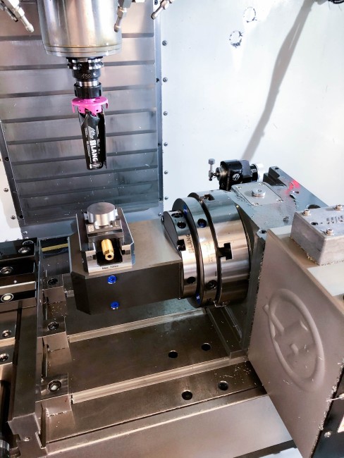 Der gehärtete und geschliffene Doppelaufnahmekörper ist ideal für die manuelle 5-Seiten-Bearbeitung von Werkstücken mit 3-Achs-Maschinen oder vierten Achsen, da das Werkstück gemeinsam mit dem Spannmittel wiederholgenau und prozesssicher um 4 x 90° in der Nullpunktaufnahme des Doppelaufnahmekörpers gedreht werden kann.