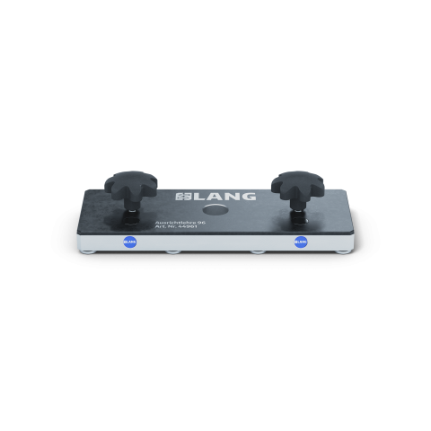 The alignment gauge ensures the exact alignment of two or more grid plates placed next to each other. This enables the clamping of vices or fixtures across plates. The alignment gauge is not only available for purchase but also for loan and can be returned after the successful installation of the zero-point clamping system.