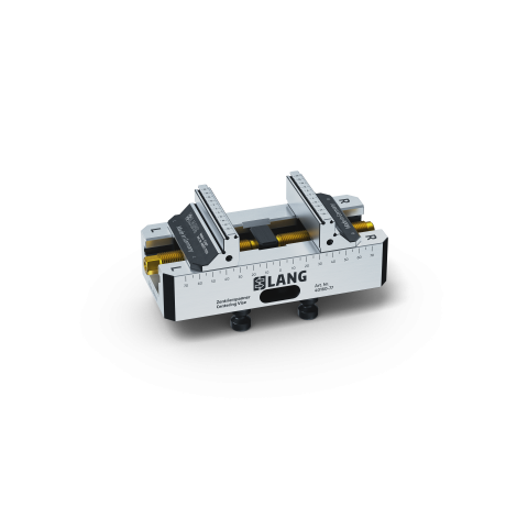 El tornillo de banco de 5 ejes de LANG Technik se caracteriza por su diseño compacto y sus elevadas fuerzas de sujeción. Sus puntos fuertes se manifiestan especialmente en el mecanizado de 5 ejes de materias primas. El tornillo de banco de 5 ejes de acero cementado y sus mordazas de sujeción fresadas de material macizo soportan sin problemas incluso los esfuerzos más elevados en la producción de mecanizado. Con su tecnología de sujeción de forma ajustada, garantiza la máxima seguridad en el proceso de mecanizado.