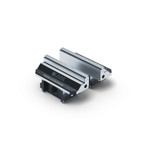 LANG Technik amplía su gama de mordazas de sujeción para la mordaza de 5 ejes Makro•Grip® con una nueva variante de sus populares mordazas de contorno para la sujeción de perfiles y piezas premecanizadas. La característica especial es la fijación de las mordazas de contorno a las mordazas de sujeción de la mordaza de 5 ejes sin cambiar las mordazas ni las herramientas, lo que garantiza un proceso de configuración muy sencillo y rápido. Las mordazas de contorno encajan en el dentado Makro•Grip® y las mantienen en su posición. Las mordazas de contorno se atraen a las mordazas de sujeción mediante imanes. Este tipo de mordaza es adecuada para el exterior de las mordazas de sujeción y está pensada para el gran rango de sujeción, por así decirlo.