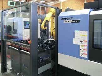 - Caricamento della macchina DN SOLUTIONS tramite robot Fanuc pre-programmato