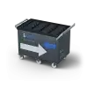 O carrinho de automação do sistema de automação RoboTrex 96 tem uma capacidade de armazenamento de 15 prensas, que são armazenadas verticalmente para serem coletadas pelo robô. Quando totalmente carregado, o tamanho máximo da peça de trabalho é 205 x 205 x 90 mm. Para o uso de peças mais altas ou mais largas, as posições individuais dos tornos ou as fileiras completas podem ser deixadas livres ou desmarcadas por meio da função de controle do sistema. Graças à sua flexibilidade e mobilidade, o carrinho de automação pode ser pré-equipado off-line, independentemente do local.