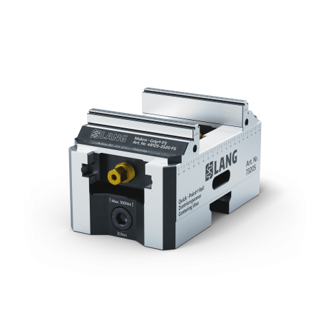 O torno de centragem Quick•Point® Rail 125 tem um comprimento de corpo básico de 210 mm e pode acomodar garras de fixação de tamanho de sistema 125. O torno de centragem pode ser fixado às barras de fixação do sistema de fixação rápida com flexibilidade absoluta e precisão de posicionamento em intervalos de 4 mm. Graças à guia em cauda de andorinha e ao princípio de puxar para baixo, a conexão entre a barra de fixação e o torno de centragem é particularmente robusta. O sistema de fixação rápida suporta até mesmo as mais altas forças de usinagem e, assim, comprova sua extraordinária estabilidade e capacidade de carga.