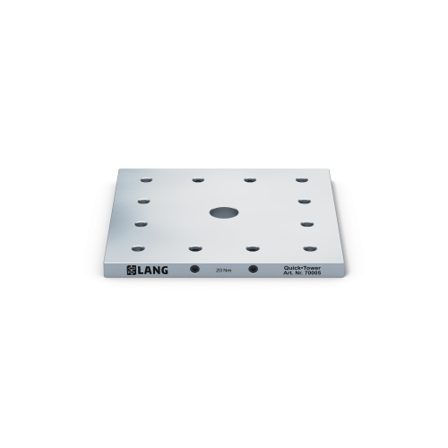 As placas de base são usadas para receber o tombstone do Quick•Tower e são usadas quando ele deve ser usado em mesas de máquinas ou sistemas de paletes sem um sistema de fixação de ponto zero. Elas estão disponíveis em duas versões e tamanhos diferentes, com ou sem furos de montagem.